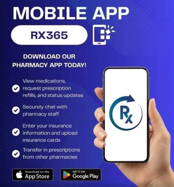 For easy refills, reminders, and to contact the pharmacy, download our RX365 app.